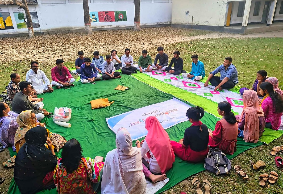 আলোচনা শেষে বিদ্যালয়ের সবুজ চত্বরে খোলা আকাশের নিচে পাটি ও ম্যাট বিছিয়ে ইফতারে অংশ নেন সবাই।